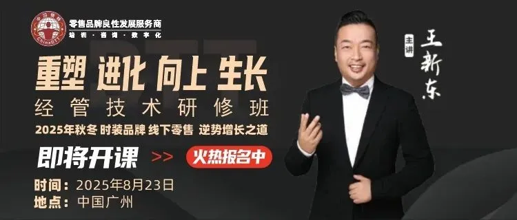 1 2025秋冬线下零售要想赢,做什么、怎么做? 线下零售逆势增长的机会到底在哪里? 如何厘清市场乱象背后的本质,精准施策,开创线下零售红海中的蓝海? 各种渠道、业态的门店,各种经营模式,如何摆脱当下陷入窒息的抢客困境,找到精准获客的蹊径? 25秋冬的经营目标、商品、人员、技术、客流管理技术,如何进行有效迭代、升级,用当下全球业界领先的经营技术,打造时装零售经营管理的持续增长的确定性技术体系,对抗纷繁复杂的客观不确定性? 深耕时装品牌咨询二十多年的广州钡特咨询,本次邀请国内时装零售战略、体系、技术资深顾问、时装品牌PDCA零售管理技术体系的创立者王新东老师,于8月23日在广州开设“2025秋冬 时装品牌 线下零售 逆势增长之道 经管技术研修班”。 王新东老师是国内著名的线下零售实战型技术顾问、管理专家,秉承稻盛和夫传奇经营理念和技术体系,其开创的PDCA零售管理技术体系深度辅导的国内多个著名品牌,均在疫情期间及后疫情时代,实现了目标和盈利稳定增长的经营佳绩。 本次课程,王老师精心总结、提炼了近两年经济下行期辅导品牌零售的成功案例的技术精华,结合品牌、零售当下普遍的痛点,深度剖析、精准施策,其实战派、结果导向、逆向突破思维、技术可落地、交付性强,一定会给学员带来不同凡响的思维突破和经营技术破局收获。 咨询品牌:GUCCI、MUJI、Maxco、雅戈尔、影儿、金利来、之禾、lulualways等。 课程内容设计