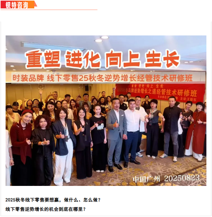 广州钡特咨询携手中国品牌零售管理咨询界的专家王新东老师,于8月23日,在广州举办了以“重塑 进化 向上 生长”为主题的时装品牌·线下零售2025秋冬逆势增长经管技术研修班,并取得了圆满成功!